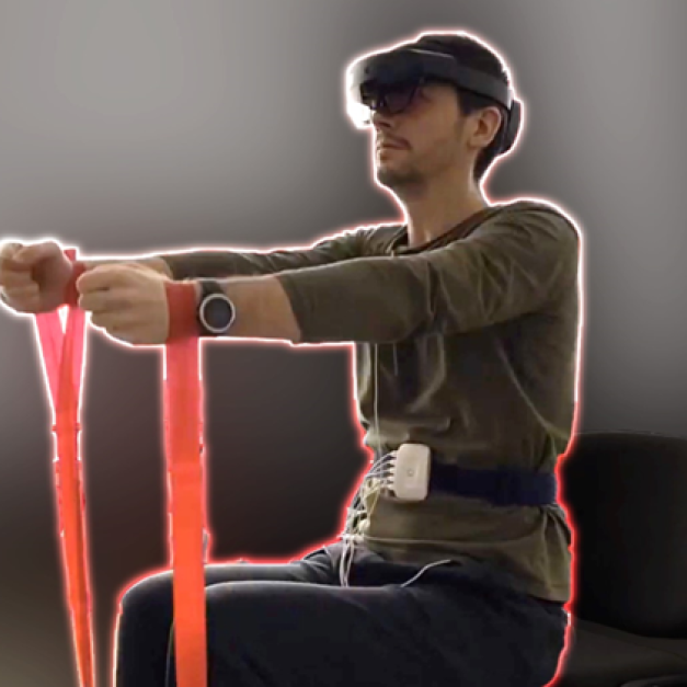 A technology combining mixed reality and IoT sensors for real-time feedback from muscles and vitals, monitoring and guiding exercises