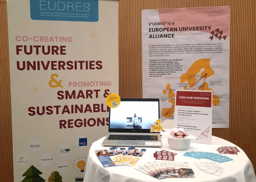 Next to the great variety of talks, panels and workshops, the event also offered a "Dissemination Open Space" - a wide range of booths offering insights into the activities of EURASHE partners. Among the booths, also E³UDRES² was present, offering a variety of informative materials about the alliance as well as the opportunity to ask questions first-hand. The event also served as a great opportunity to connect across European University Alliances - many representatives of alliances such as U!REKA, RUN-EU or the INVEST Alliance were attending and enjoyed the great opportunity to share their experiences with each other.