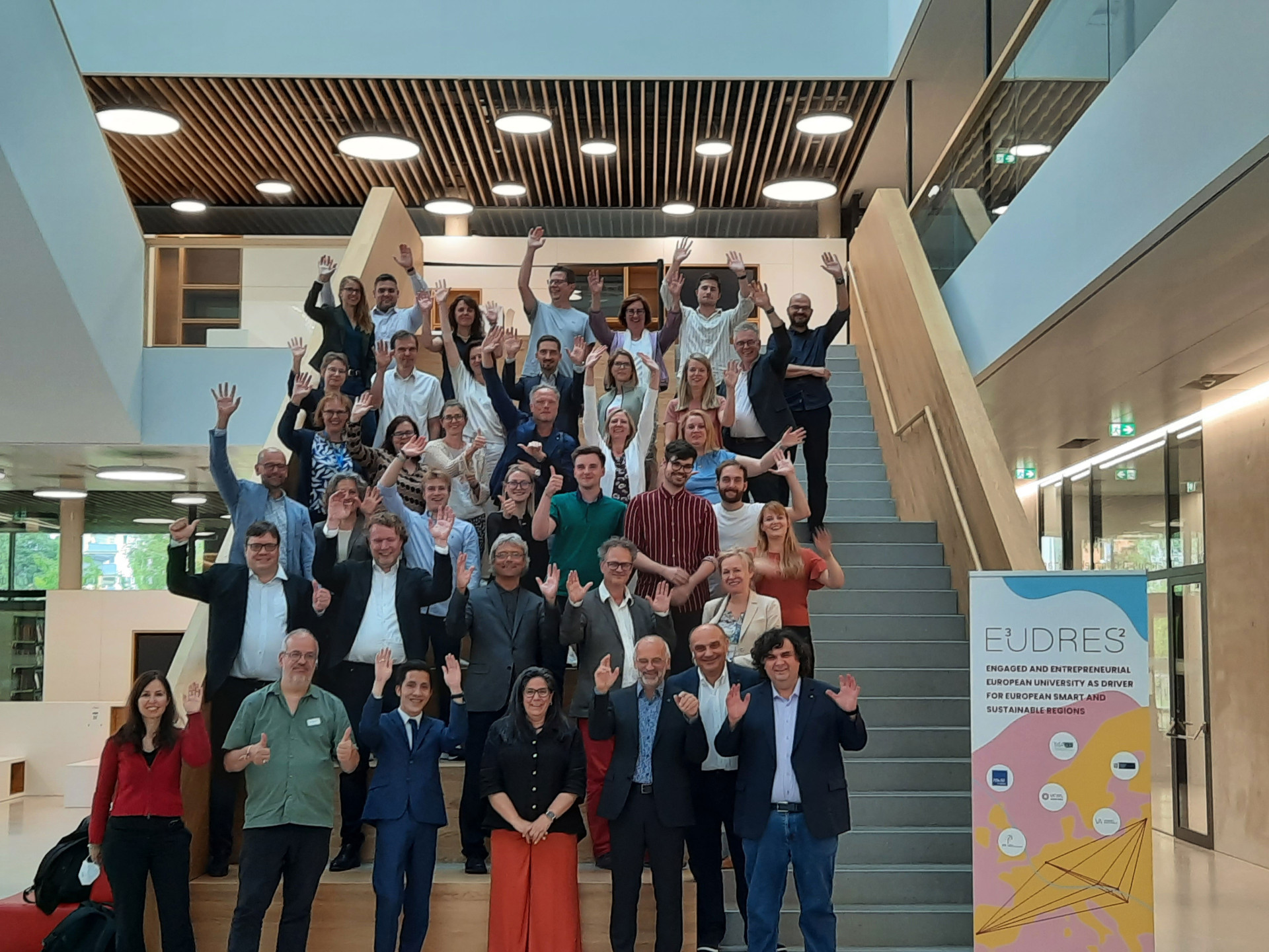 On 01 October 2022, the E³UDRES² Alliance celebrated its second anniversary! A lot has happened in the E³UDRES² network in the past year: Formats such as the I Living Labs have been refined, the first-ever E³UDRES² Bootcamp took place in the Tyrolean Alps, and various on-site consortium meetings and events took place all over Europe, for example in Latvia and Austria. Further important steps were taken in terms of student representation and the involvement of students in E³UDRES² - the E³UDRES² Board of Student Representatives was fully established, with their own chair and vice-chair representing the board and making sure the students' opinion is considered in all things E³UDRES². In summer, E³UDRES² joined the Startup Villages Initiative. Finally, and most importantly, the E³UDRES² network has greatly expanded over the past months - with Fulda University of Applied Sciences, Saxion University of Applied Sciences, and Jyväskylä University of Applied Sciences, E³UDRES² has welcomed welcomed three great new partner universities to its consortium.