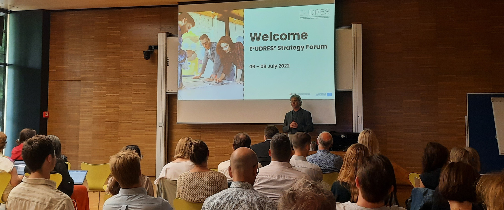 Hannes Raffaseder, E³UDRES² lead coordinator, opening the Strategy Forum at St. Pölten UAS' Assembly Hall. © Ramona Mauthner