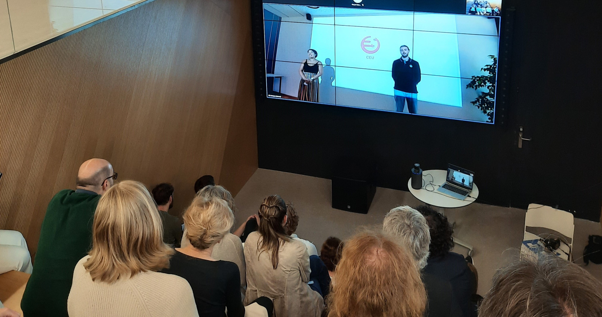 The E³UDRES² team following the livestream of the final Bootcamp presentations in St. Jakob, about 500km away. © Ramona Mauthner