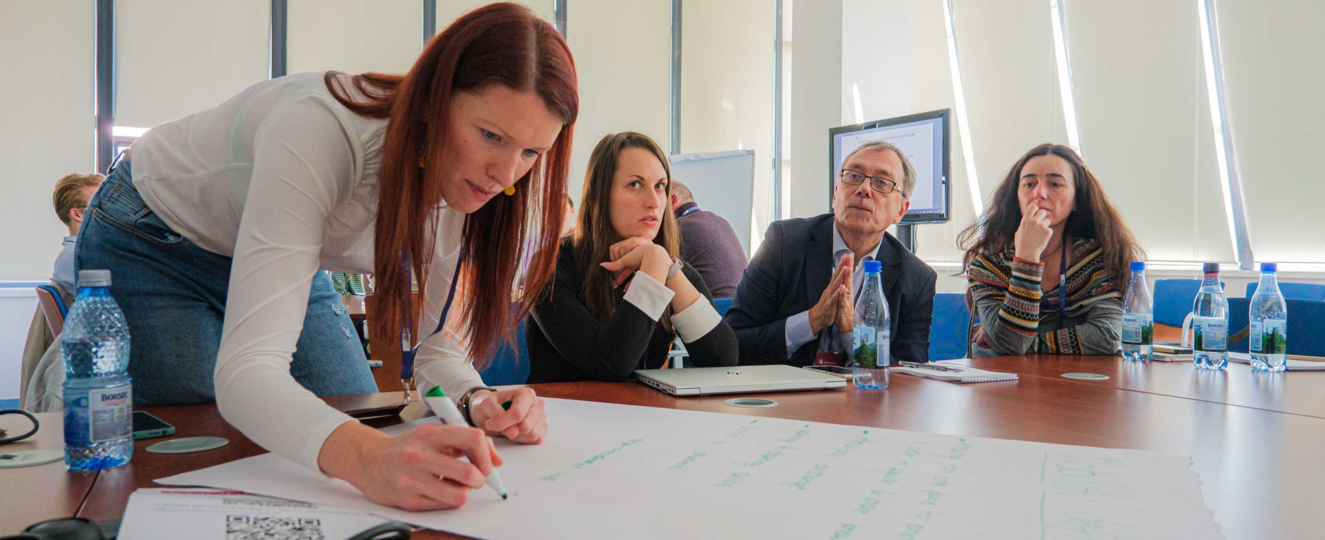 E³UDRES² members working on various pressing topics such as the communication strategy or student engagement in the focus tables.